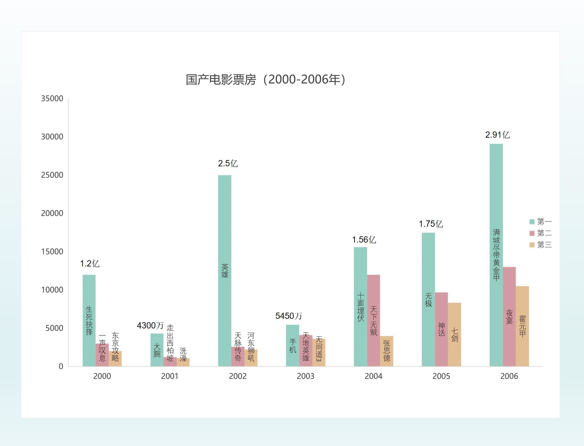 《英雄》橫空出世的2002年,全年票房不足10億元,當(dāng)年熱映的海外大片《指環(huán)王》和《蜘蛛俠》的內(nèi)地票房分別是5600萬和4300萬元。而國產(chǎn)電影的第二、三名《天脈傳奇》和《河?xùn)|獅吼》的票房都在2000萬級。