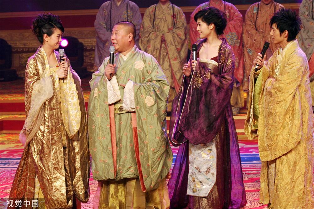 2006年12月14日,《滿城盡帶黃金甲》在北京電影制片廠舉行首映慶典。涂經(jīng)緯、郭德綱、沈星、何炅穿上古裝造型主持。視覺中國 圖