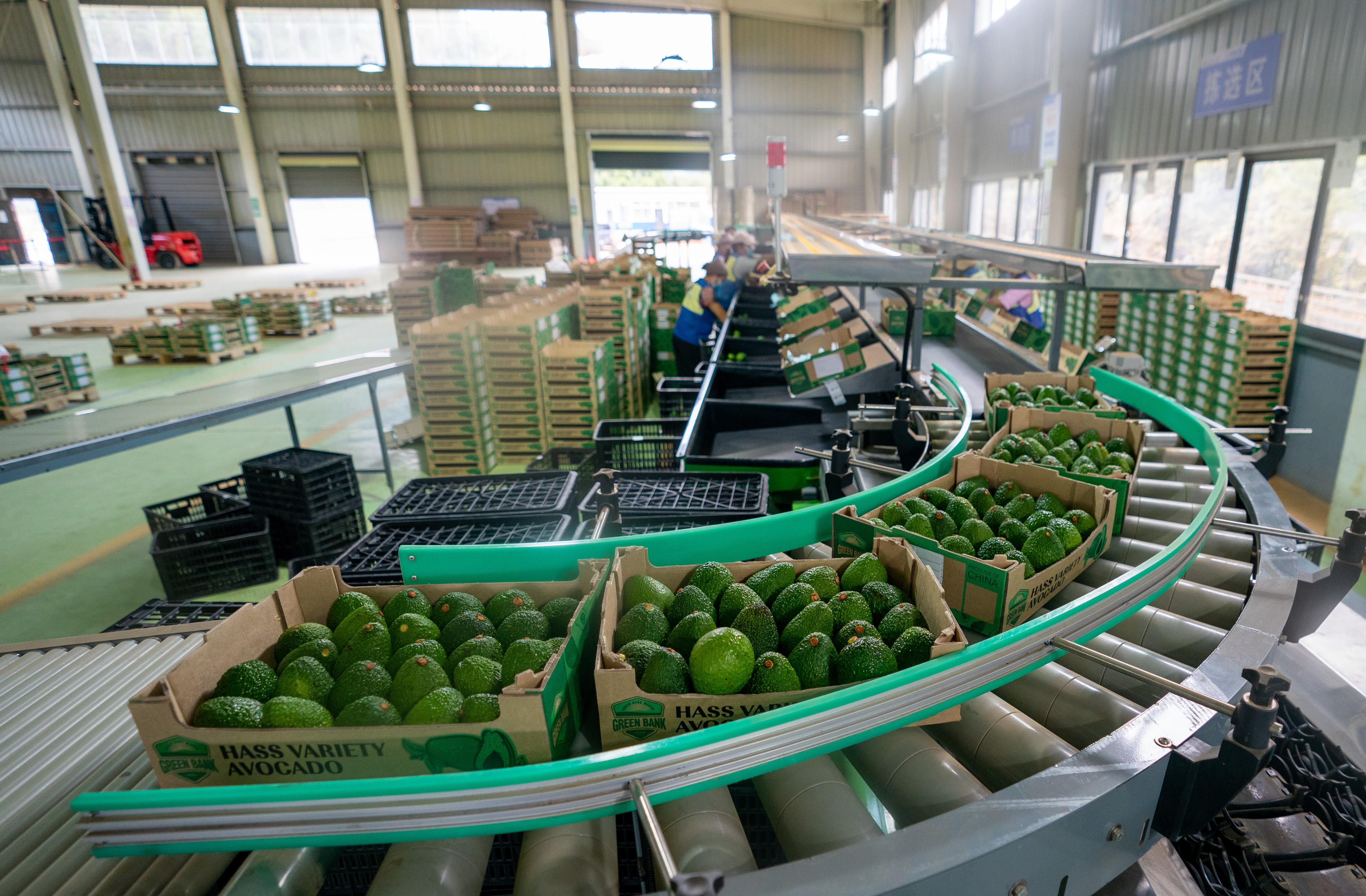 在云南省孟連縣進(jìn)行分揀包裝的牛油果(2022年11月17日攝)。新華社記者 江文耀 攝