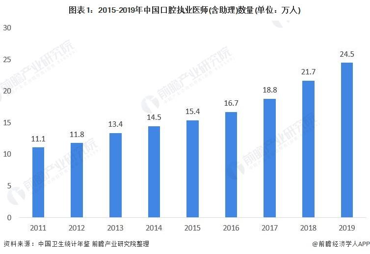 種植牙醫(yī)的數(shù)量影響種植牙市場(chǎng)供給。近年來我國口腔執(zhí)業(yè)醫(yī)師數(shù)量大幅逐年增加,從2011年的11.1萬人增長到2019年的24.5萬人。根據(jù)數(shù)據(jù)顯示,我國口腔醫(yī)師中掌握種植牙技能的醫(yī)生占比約20%,按照此比例可粗略測(cè)算出我國種植牙醫(yī)數(shù)量在5萬人左右。但相比較于韓國,我國種植牙醫(yī)滲透率仍然較低,韓國口腔醫(yī)師中掌握種植牙技能的醫(yī)生占比達(dá)到了80%,隨著我國種植牙市場(chǎng)需求的不斷提升,我國種植牙醫(yī)數(shù)量將不斷增長,滲透率不斷提高。