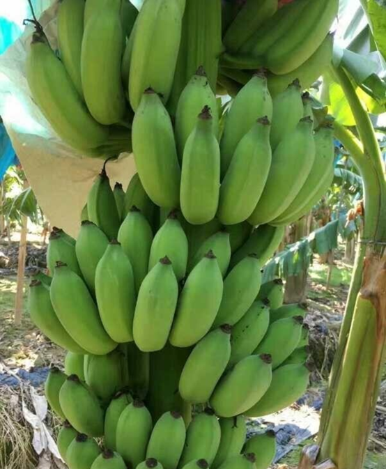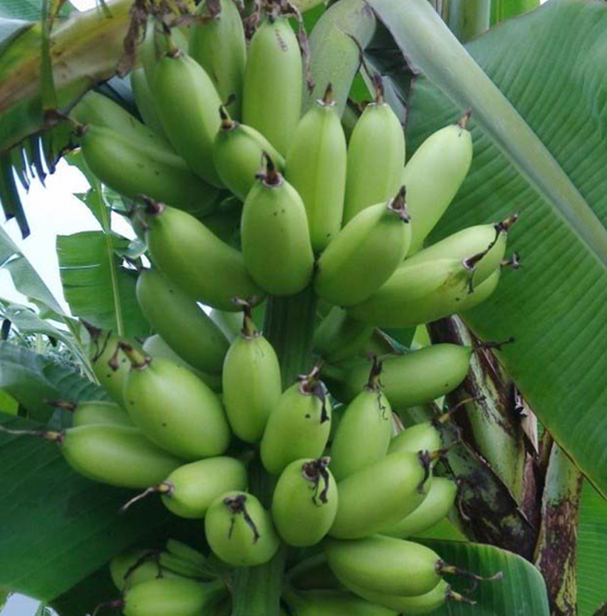4、 廣東香蕉1號(hào) 原名741,屬矮至中干型香牙蕉,由廣東省農(nóng)業(yè)科學(xué)院果樹(shù)研究所于1974年從高州市的高州矮香蕉中芽變選育而成。植株高約2.00~2.40米,假莖粗壯。果穗中等長(zhǎng)大,穗長(zhǎng)68~76.3厘米,果梳數(shù)較多為10~11梳,果指長(zhǎng)17~22厘米,單果重100~130克,全糖含量19.4%;抗風(fēng)、抗寒、抗葉斑病較強(qiáng),耐貯性中等。該品種豐產(chǎn)、穩(wěn)產(chǎn)、抗逆能力強(qiáng),受寒后恢復(fù)生長(zhǎng)快,是十分適合在華南地區(qū)特別是沿海多臺(tái)風(fēng)地區(qū)栽培的新品種。