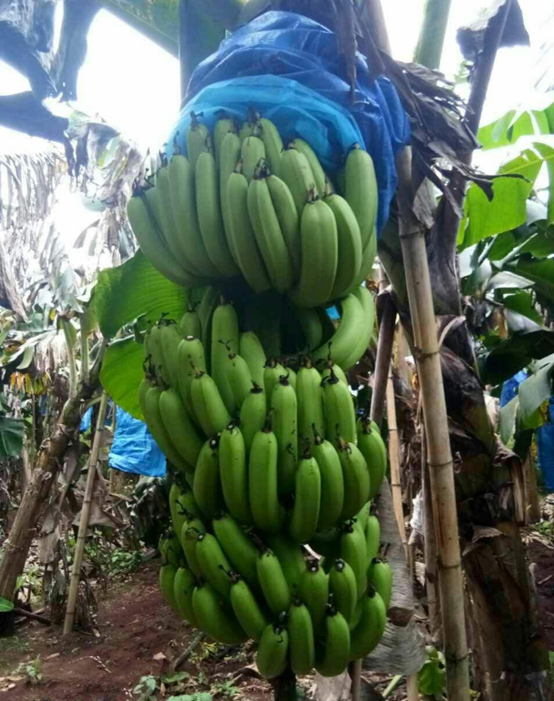 1、 矮腳頓地雷 屬中干型香牙蕉,為廣東高州市等地的主栽良種之一。該品種產(chǎn)量穩(wěn)定,適應(yīng)性強(qiáng),抗風(fēng)力中等,耐寒力較強(qiáng),遭霜凍后恢復(fù)較快。植株假莖高2.50~2.80米,生勢(shì)粗壯,葉片長(zhǎng)大,葉柄較短;果穗較長(zhǎng)、梳距密。小果多而大,果指長(zhǎng)18~22厘米,可溶性固形物20%~22%,品質(zhì)和風(fēng)味優(yōu)于高腳頓地雷及齊尾(高干型香牙蕉),品質(zhì)中上;一般單株產(chǎn)量為20~28千克,高產(chǎn)株可達(dá)50千克。