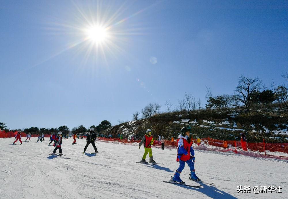 在天津薊洲國(guó)際滑雪場(chǎng),教練與小朋友在雪道上練習(xí)滑雪(2月20日攝)。新華社記者 孫凡越 攝