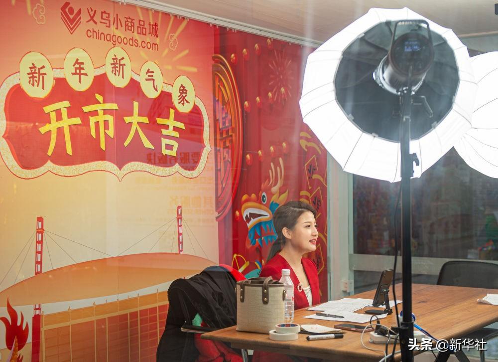 2月12日,在浙江義烏,主播通過(guò)直播方式向采購(gòu)商介紹義烏中國(guó)小商品城開(kāi)市情況。新華社記者 江漢 攝