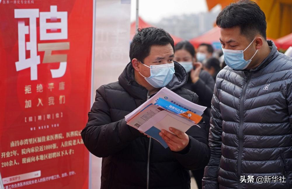 2月25日,江西省南昌市灣里管理局開(kāi)展“春風(fēng)行動(dòng)”線下招聘活動(dòng)。這是求職者在招聘會(huì)現(xiàn)場(chǎng)交流。新華社記者 萬(wàn)象 攝