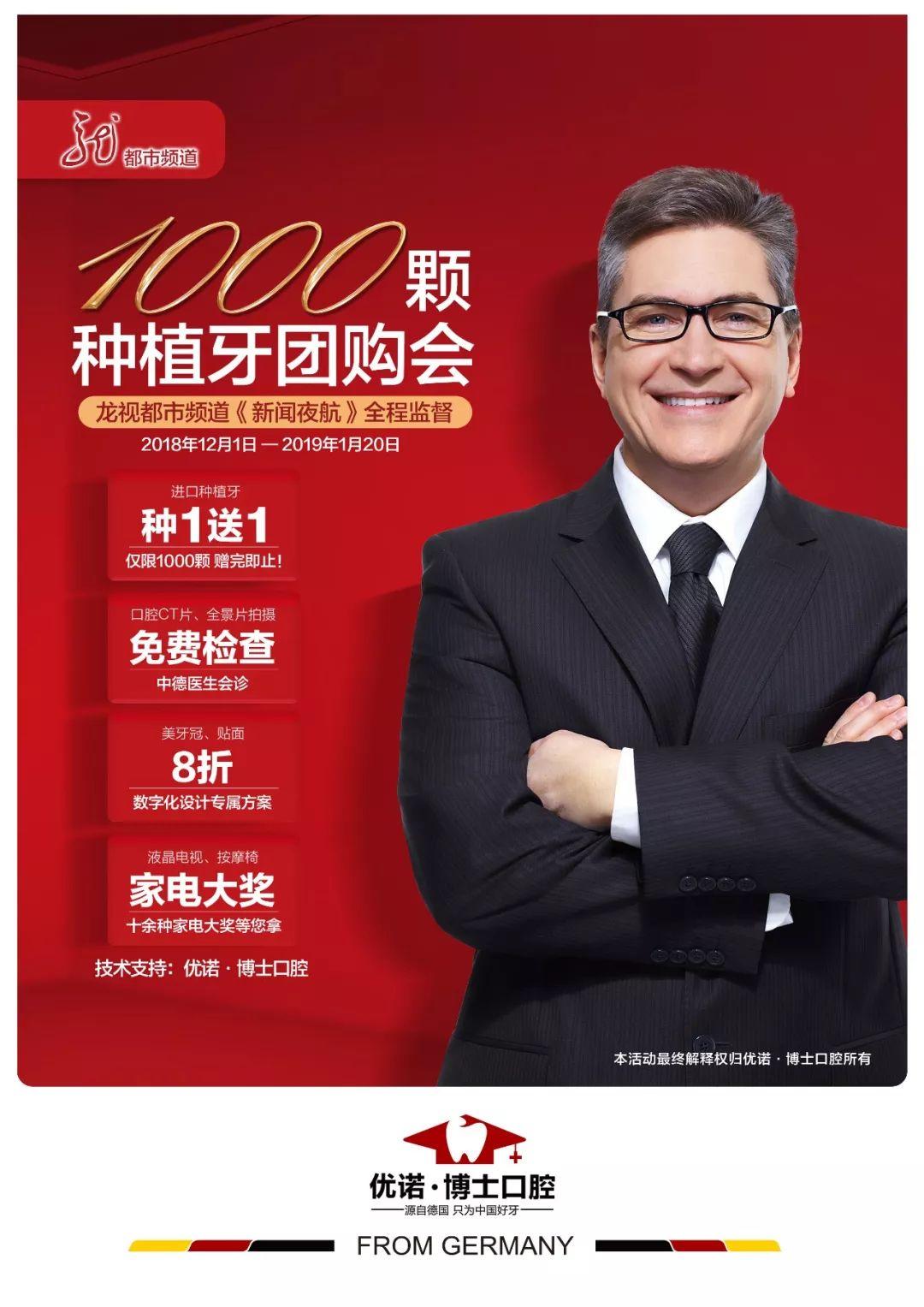 降低種植價格門檻,種一還送一,公益回饋龍江市民?;顒訉iT選擇優(yōu)諾·博士口腔為技術(shù)支持單位,《新聞夜航》全程監(jiān)督種植流程,種植牙優(yōu)質(zhì)。