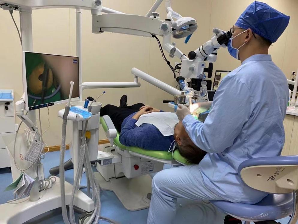 從醫(yī)近十年來,劉芳強始終刻苦學習專業(yè)理論,鉆研、開展本專業(yè)的前沿技術,他擅長運用先進的材料、設備和前沿技術手段,為患者解決頑疾?!帮@微根管術,可以專門處理一些疑難病例?;颊哐例X內有些通道,用肉眼根本看不到,比頭發(fā)絲還細,我們用顯微鏡技術把牙齒放大到30倍,這樣就可以看得清楚,便于調節(jié)。”