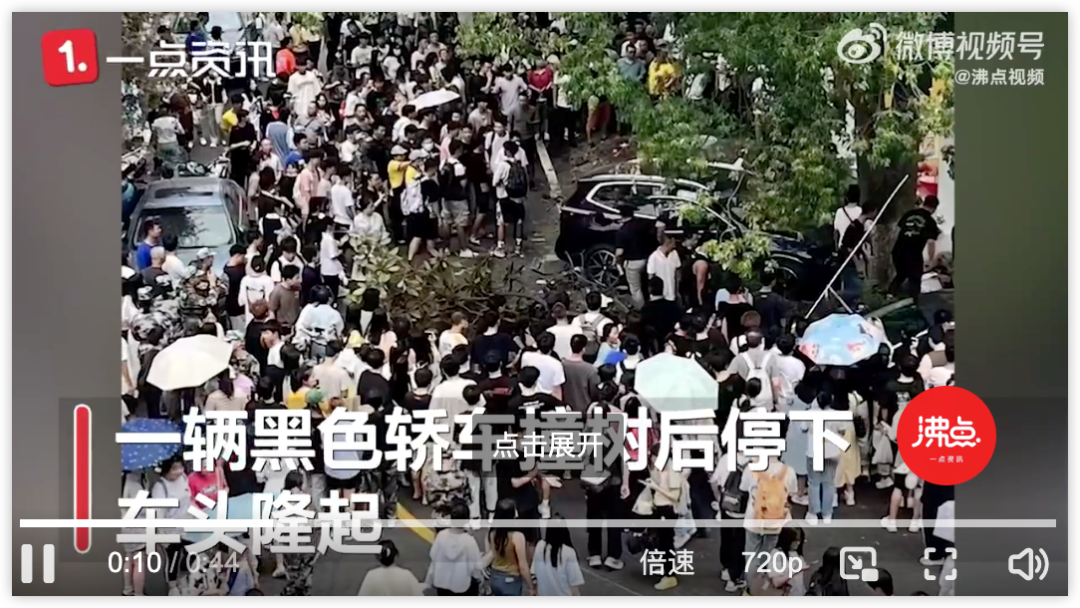 11.湖南涉外經(jīng)濟(jì)學(xué)院校內(nèi)發(fā)生交通事故致2人受傷:7日,網(wǎng)曝湖南涉外經(jīng)濟(jì)學(xué)院內(nèi)發(fā)生一起車禍,一轎車撞樹后停下,車頭隆起。長(zhǎng)沙市公安局交警支隊(duì)通報(bào)稱,當(dāng)日,該校教師張某容駕駛小車在校內(nèi)行駛時(shí),因操作不當(dāng),與停放在路邊的小車及行人碰撞,造成2人受傷、3車受損。目前,傷者已送醫(yī)調(diào)節(jié),均無(wú)生命危險(xiǎn),肇事司機(jī)已被控制。(瀟湘晨報(bào))