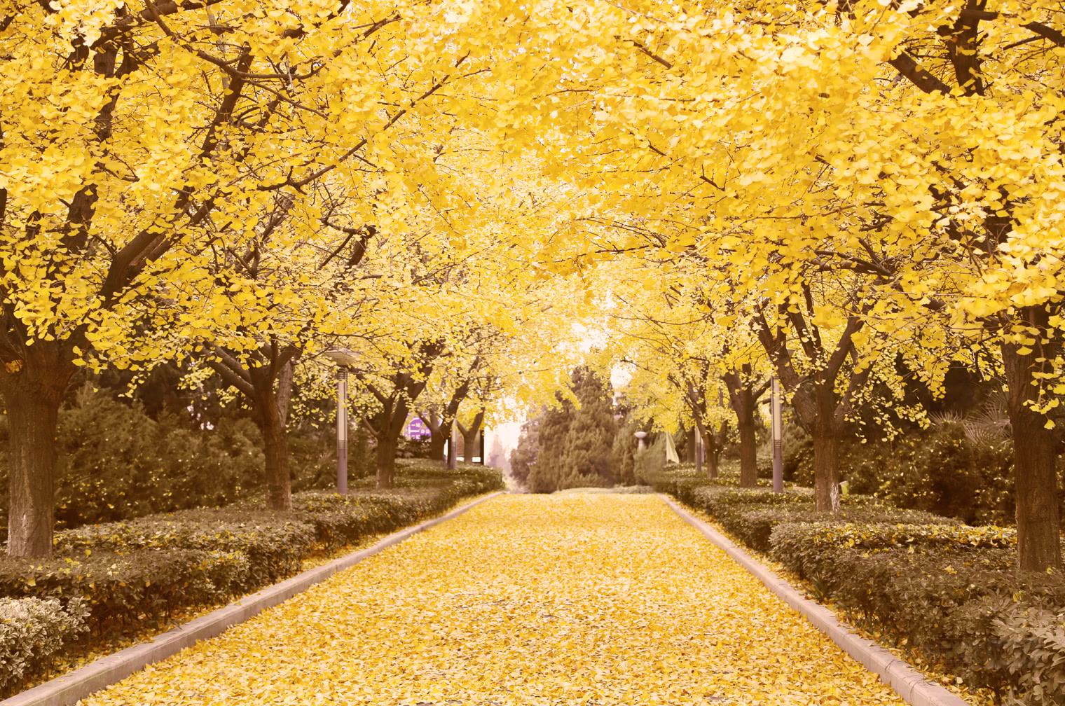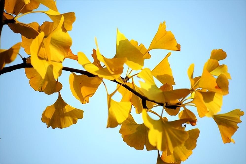 銀杏銀杏是我國的一級保護樹種,它的秋色金黃,十分漂亮,是秋天黃色系里漂亮的變色彩葉樹種,沒有之一。它的葉形也十分的奇特可愛,猶如蝴蝶,或似折扇。