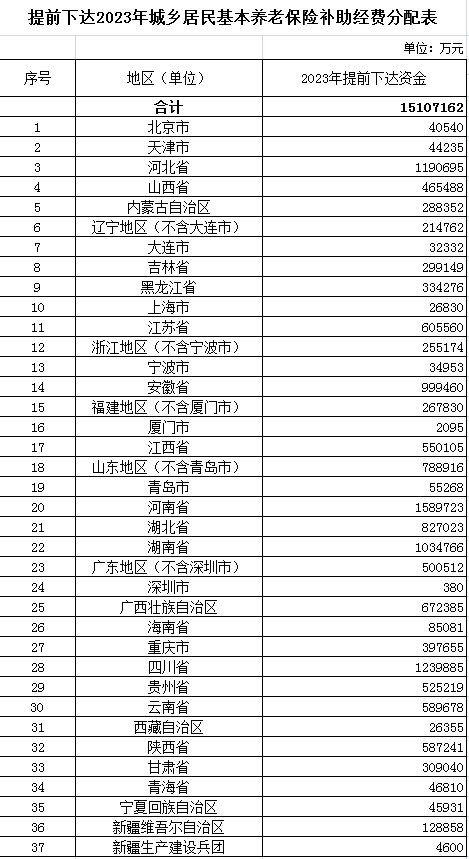 前段時間,財政部發(fā)布了《關(guān)于提前下達2023年 城鄉(xiāng)居民基本養(yǎng)老保險 補助經(jīng)費預(yù)算的通知》今天我們就帶大家來看看,在這份通知中,各地的補助經(jīng)費都是如何分配的??纯茨愕募亦l(xiāng)排在哪里!