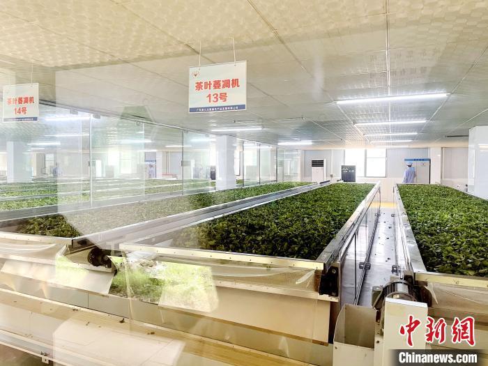 在華南地區(qū)首條自動化、標(biāo)準(zhǔn)化、智能化紅茶加工生產(chǎn)線上,被采摘后的英德紅茶正在進(jìn)入萎凋環(huán)節(jié)。 許青青 攝