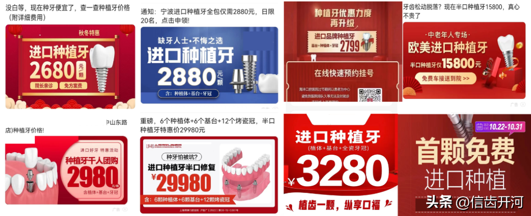 受到消費降級和政策的影響相當一部分的中產群體會對高價的種植消費產生“觀望”態(tài)度。而低價就是引發(fā)這些處于觀望狀態(tài)的消費者產生消費沖動的有方法。另外也有一部分本身消費能力不足但是有剛性需求的消費者,也會被這些低價廣告吸引到機構。