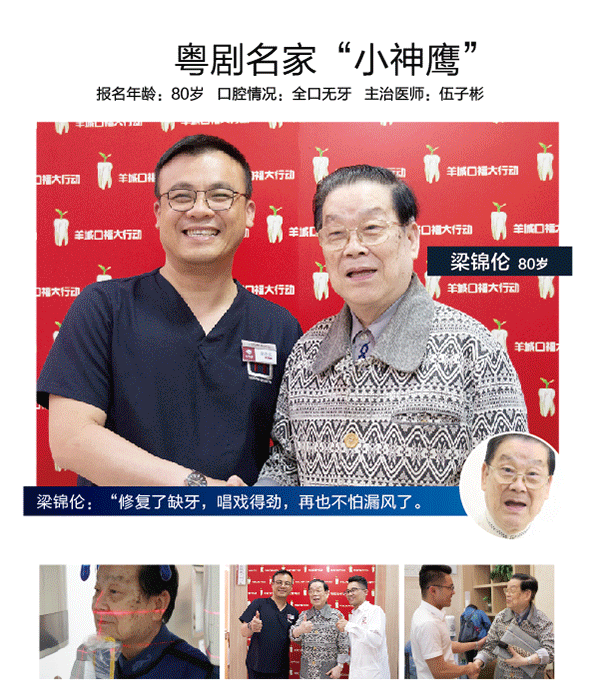 他精湛的技術,認真負責的態(tài)度,讓很多市民慕名而來,指定找他看牙,就連粵劇表演藝術家“小神鷹”、《我愛你中國》作曲者鄭秋楓等羊城名人紛紛找他看牙。