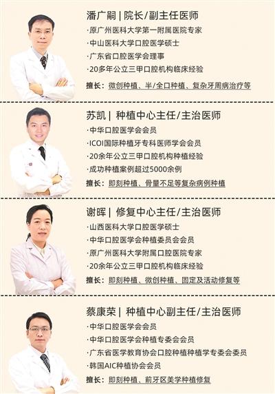 同時(shí),醫(yī)院 “高齡種牙專(zhuān)家特診組”聚集了多名有三甲醫(yī)院口腔科工作經(jīng)歷的名醫(yī),包括潘廣嗣院長(zhǎng)、蘇凱主任、謝暉主任等,臨床經(jīng)驗(yàn)均在20年以上、種牙案例超過(guò)10000例,在數(shù)字化種植、疑難復(fù)雜種植方面經(jīng)驗(yàn)豐富,并擁有4項(xiàng)高齡種牙專(zhuān)項(xiàng)技術(shù),七八十歲也有望輕松種好牙。大專(zhuān)家,超值優(yōu)惠加長(zhǎng)期質(zhì)保服務(wù),3重保障讓羊城市民放心種好牙!