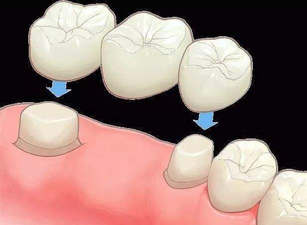 其實在種植牙流行起來之前,常見的便是烤瓷牙了,同時也是使用次數(shù)多的修復手段??敬裳朗且匀毖纼蓚?cè)的健康牙位基礎,將鄰牙磨小一些,就像橋墩一樣,抬起中間的缺牙從而起到了固定作用。這種方法的優(yōu)點是美觀度高,相對于種植牙來說費用要低一些。缺點是很容易造成繼發(fā)性齲壞,咀嚼的時候?qū)︵徰喇a(chǎn)生的壓力較大。