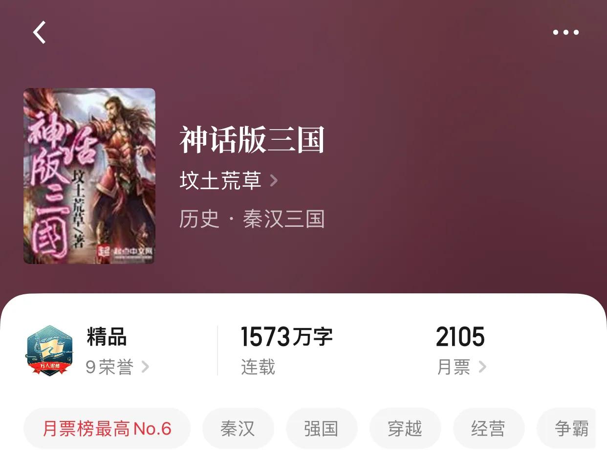 2,神話版三國。作者:墳土荒草。