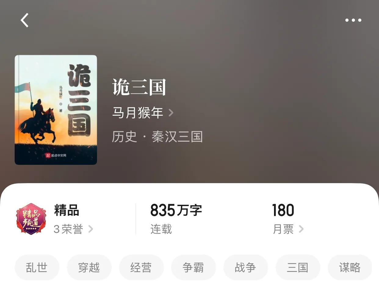 “倒也不算手無縛雞之力?!?/p>6,詭三國。作者:馬月猴年。