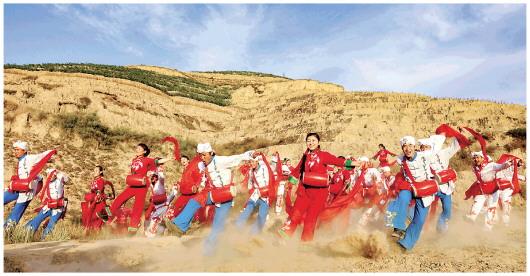 “如果說民歌是心之聲,那么秧歌便是魂之舞。”賀世成說,“正是在走、扭、搖、擺、跳中,綏德人以黃土地為舞臺,以山川河流為師,在‘踢場子’的云飛舞動中消除愁腸,抗?fàn)幟\,透露出陜北人樂觀倔強、堅韌豁達的性格特征,也呈現(xiàn)出這片農(nóng)牧交錯、多民族融合地帶粗獷豪放又細膩寬厚的社會風(fēng)貌?!?/p>