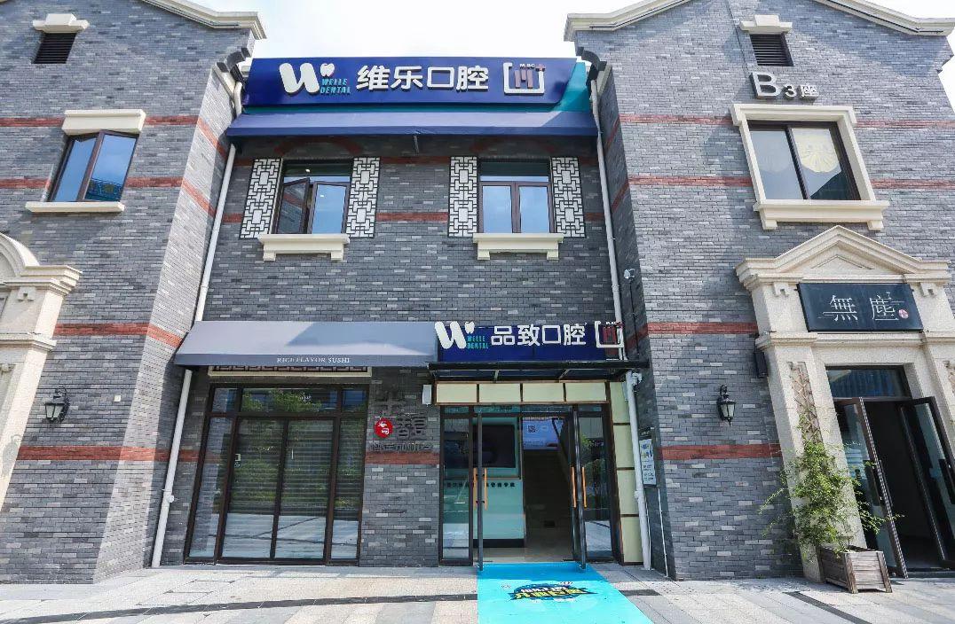 這間診所位于杉杉·普陀天地仿古街B3、B4座2樓,灰墻白瓦的古典徽派建筑間一塊藍底白字的招牌相得益彰,“維樂口腔”這幾個幼圓字體顯得有些……可愛。