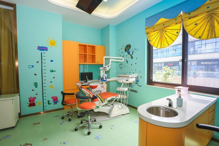 沿著樂園走到底,便是兒童診室,里面布滿各種卡通元素,就連牙科椅上也貼滿了各式各樣的卡通人物,吸引孩子們的注意。
