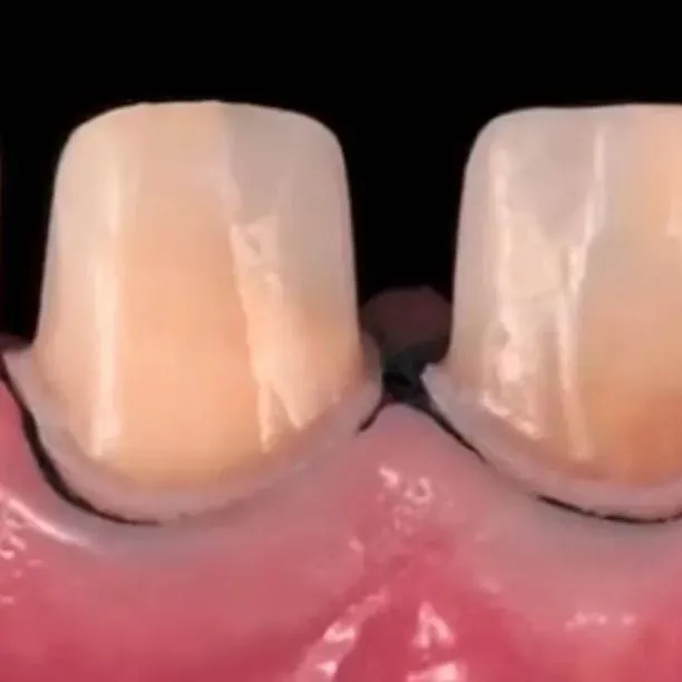 因為結(jié)構(gòu)陶瓷的基冠是白色的,具有良好的透明度和折光性以及高強度的內(nèi)冠,所以牙頸也可以達到良好的美學果。
