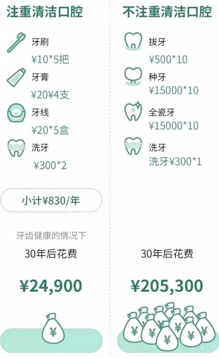 我們更希望得到的答案是某品牌的電動(dòng)牙刷、上千元的沖牙器、每年洗一次牙等簡(jiǎn)單快捷、可以用金錢解決的手段。