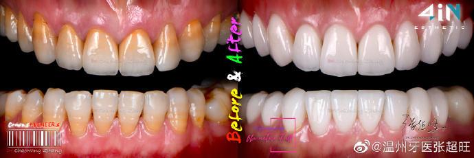 瓷貼面+全瓷冠美學(xué)修復(fù)前后對(duì)比。牙齒美白,還有很多不損害牙齒的有方法。/@溫州牙醫(yī)張超旺