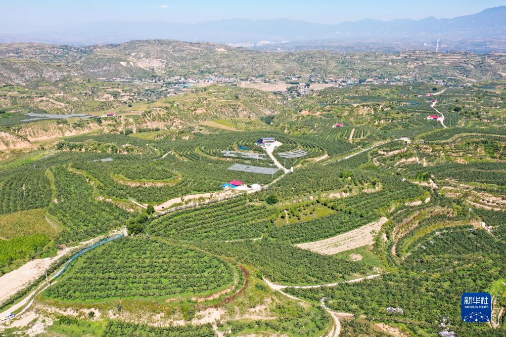 這是位于山西省汾西縣的一處梨園(2022年攝,無人機(jī)照片)。新華社發(fā)