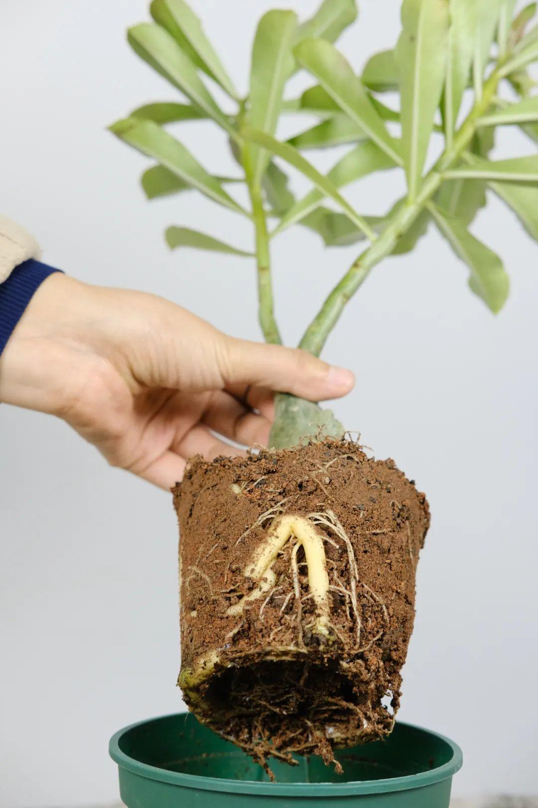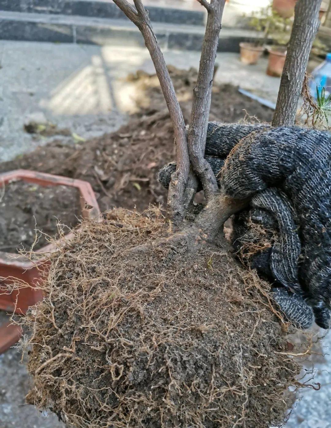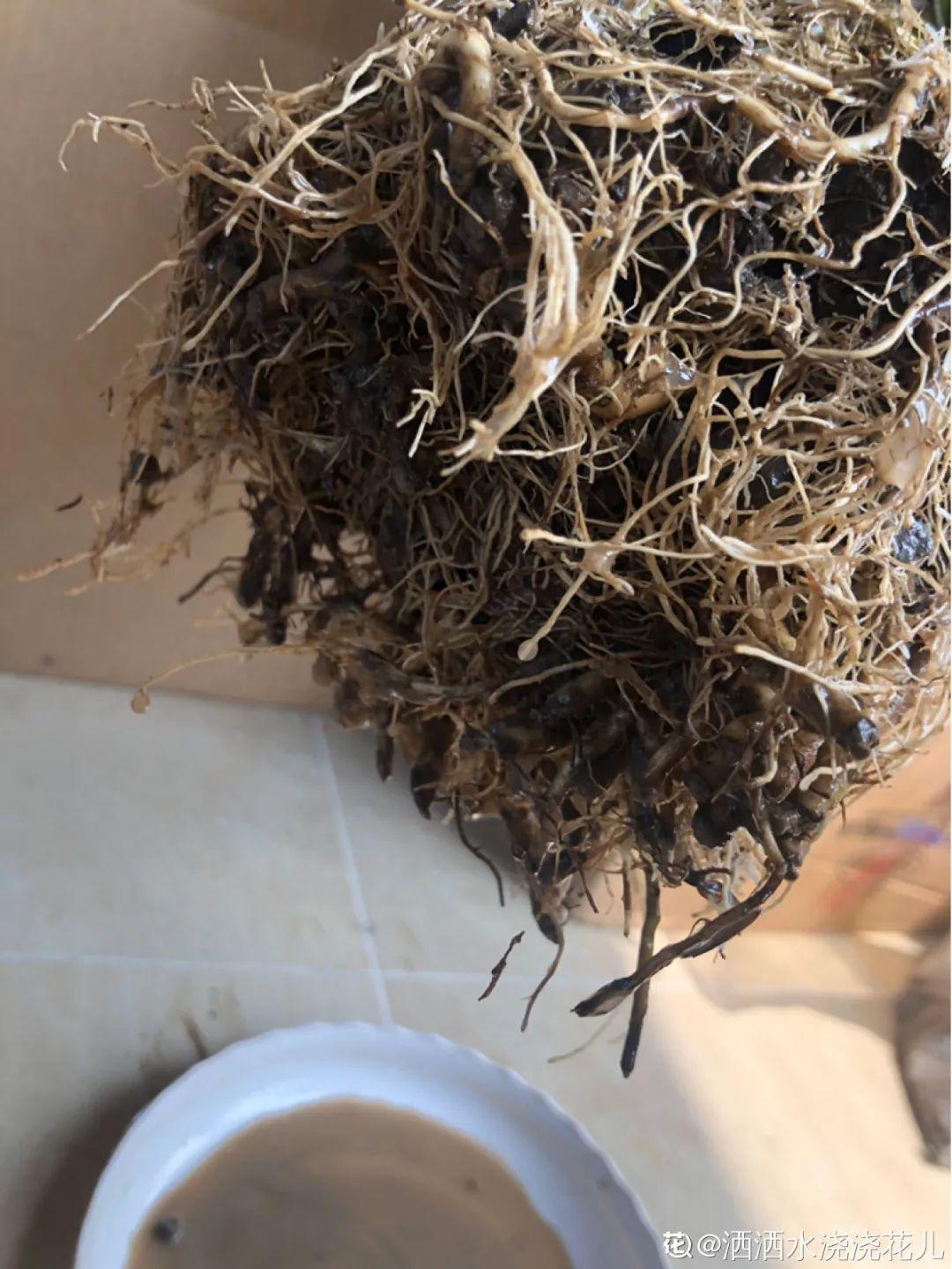 大家可以把它原來(lái)土坨外圍的1/3,用清水加點(diǎn)生根劑泡掉,露出外緣的毛細(xì)根系好扎根、吸收水分,中間剩下的2/3土坨留著作為護(hù)心土。