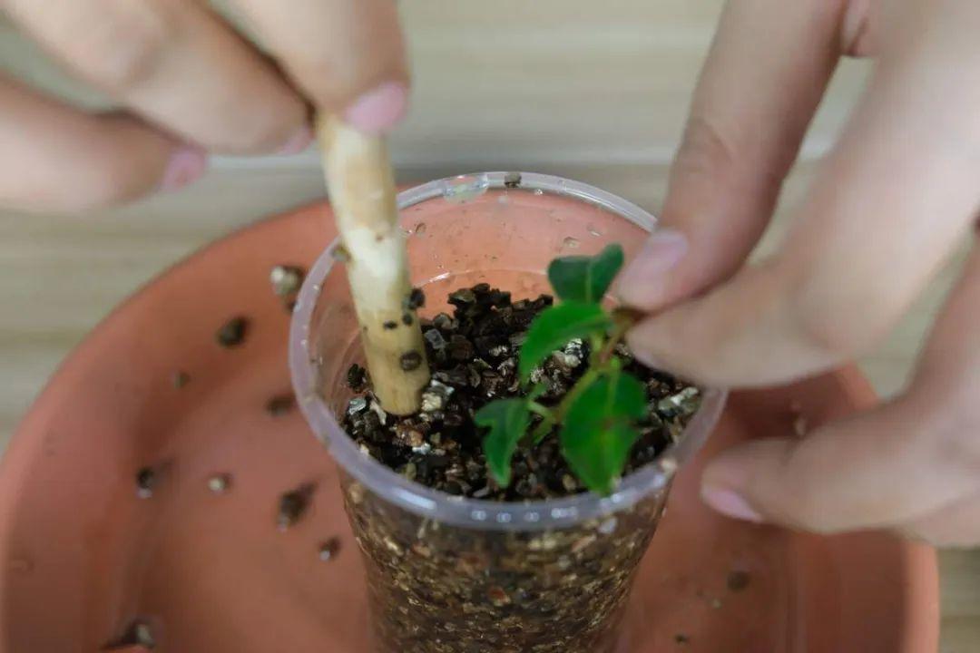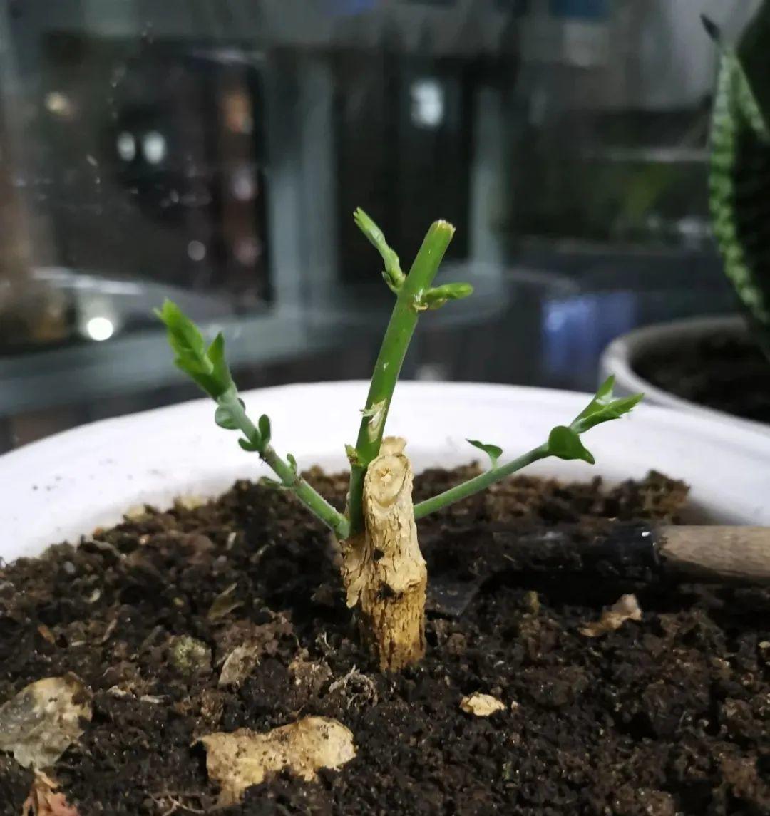 同時(shí),我們要剪掉花和花苞及一半的葉片,種下后澆透水,放散光的地方,增加濕度,讓米蘭慢慢緩苗,等新芽長(zhǎng)出來(lái),就說(shuō)明米蘭成活了!