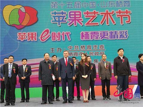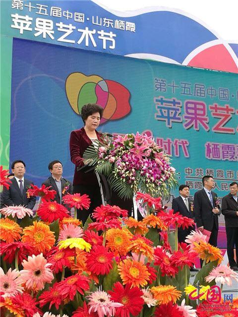 劉堅(jiān)同志宣布第十五屆山東棲霞蘋(píng)果藝術(shù)節(jié)開(kāi)幕