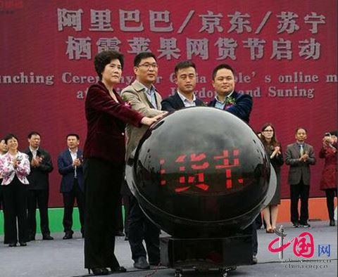 開(kāi)幕式上科技部農(nóng)村技術(shù)開(kāi)發(fā)中心副主任、研究院王強(qiáng)同志,山東省科技廳農(nóng)村科技促進(jìn)中心主任宋玉麗同志共同為“山東棲霞農(nóng)業(yè)科技園區(qū)”揭牌,全國(guó)政協(xié)委員、質(zhì)檢總局原副局長(zhǎng)、中國(guó)檢驗(yàn)檢疫學(xué)會(huì)會(huì)長(zhǎng)魏傳忠同志為棲霞德豐食品、木木農(nóng)業(yè)、伯樂(lè)莊園、牙后果蔬和鴻鑫果蔬頒發(fā)“生態(tài)原產(chǎn)地產(chǎn)品保護(hù)”證書(shū),“一帶一路”策劃師王冀女士為棲霞“華昕民聯(lián)”牌蘋(píng)果(APEC)中國(guó)國(guó)務(wù)外事國(guó)賓禮授牌并為“華昕民聯(lián)”國(guó)禮蘋(píng)果形象大使楊帆先生頒證;阿里巴巴農(nóng)村淘寶山東大區(qū)總經(jīng)理胡學(xué)軍先生、京東生鮮事業(yè)部高級(jí)經(jīng)理周冠華先生、蘇寧易購(gòu)煙臺(tái)地區(qū)總經(jīng)理蔣鵬先生和中共棲霞市委書(shū)記李寧同志共同啟動(dòng)阿里巴巴、京東、蘇寧棲霞蘋(píng)果網(wǎng)貨節(jié);中共棲霞市委書(shū)記李寧同志為分別榮獲棲霞蘋(píng)果“銷(xiāo)售大王”和“網(wǎng)絡(luò)銷(xiāo)售大王”的潘德輝先生、王樂(lè)將先生頒獎(jiǎng);隨后由農(nóng)業(yè)部原副部長(zhǎng)、國(guó)務(wù)院參事劉堅(jiān)同志宣布第十五屆山東棲霞蘋(píng)果藝術(shù)節(jié)開(kāi)幕。
