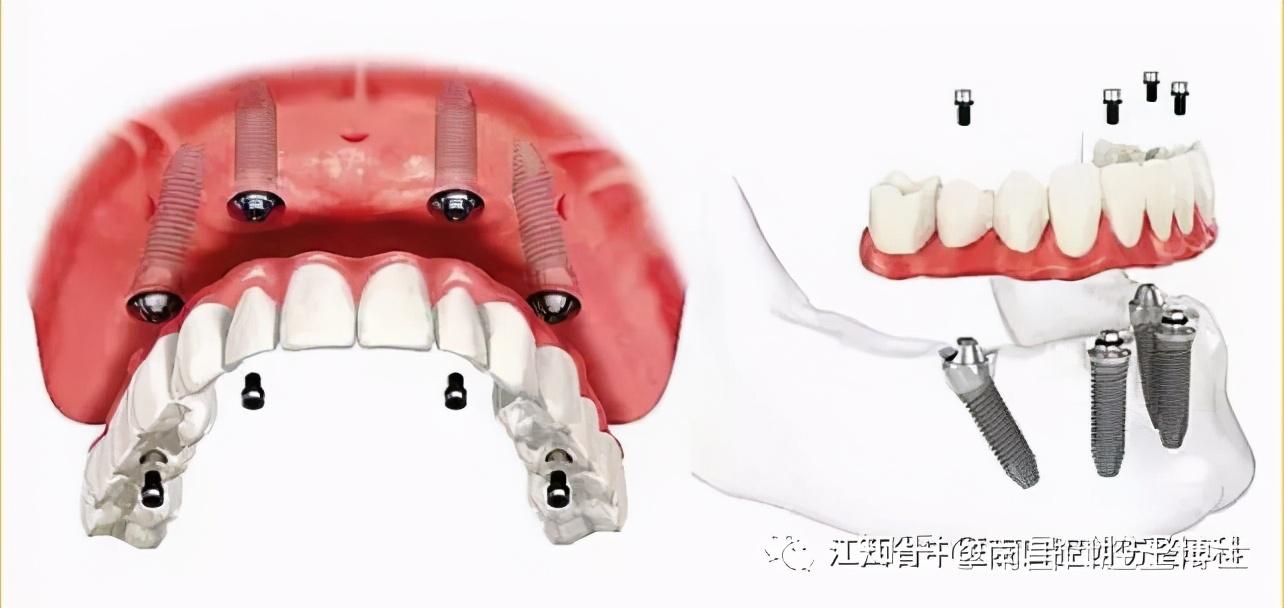 All-on-4種植系統(tǒng)是瑞典NobelBiocare公司具代表性的種植牙技術(shù)之一,植入4顆人工牙根固定半口牙橋,然后在種植體的基臺(tái)上安裝“拱形連橋”牙冠,這樣整個(gè)種植牙的受力就呈現(xiàn)出“拱形”的特征完成口腔種植修復(fù),1次完成。All-on-4 調(diào)節(jié)概念的提出,目的是通過(guò)僅使用四個(gè)種植體支撐負(fù)重的全口無(wú)牙頜修復(fù)體,為缺齒患者實(shí)施率高、果的修復(fù)。