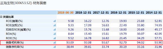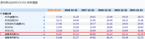 今年的毛利率還達到了93.09%,而貴州茅臺今年的銷售毛利率為91.87%。這并非是偶然成績,基本上從2014年起,往后每年的銷售毛利率都超過了茅臺。
