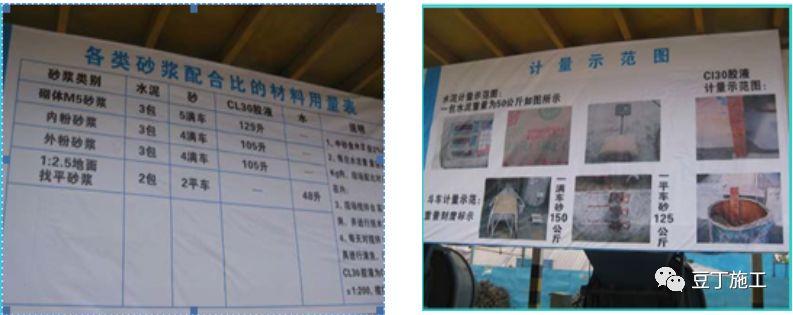 制作張貼“傻瓜式”配合比牌,將重量換算成容器計(jì)具,便于現(xiàn)場操作。