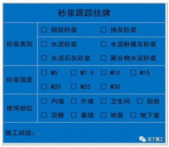 (2) 攪拌場/站必須設(shè)置不同強(qiáng)度、不同類型砂漿配合比標(biāo)示牌 (附圖) ,標(biāo)明審核手續(xù)。