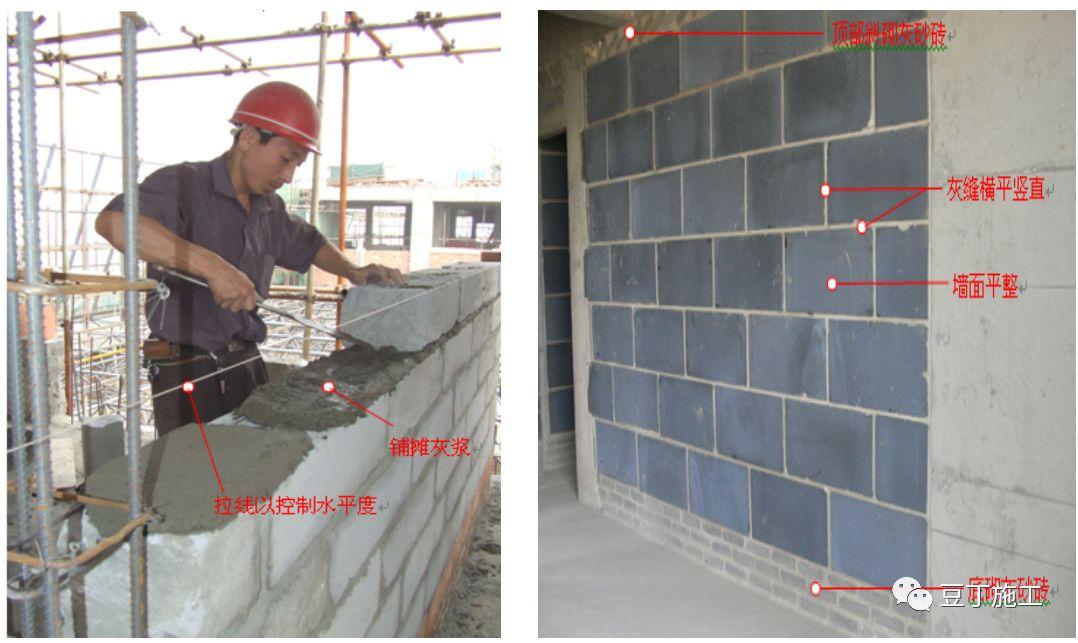 砌筑過程進(jìn)行層層拉線、掛線;用于控制砌體平整度和垂直度。