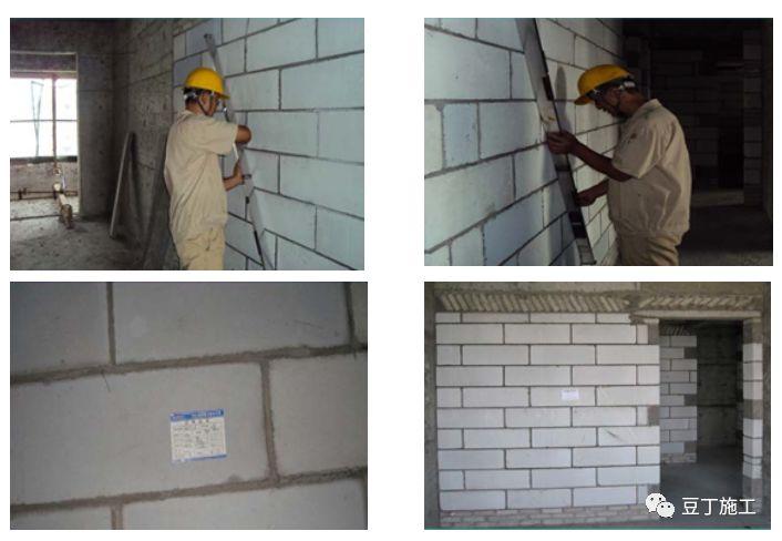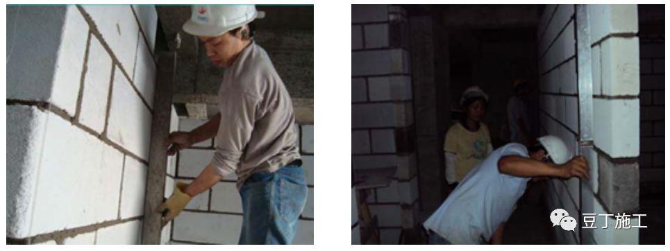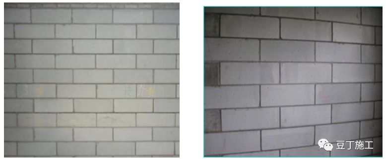 加砌塊砌體砌筑時(shí)應(yīng)嚴(yán)格控制灰縫,水平灰縫 8-12mm,豎向灰縫 15-20mm;砌筑完成后做雙面勾縫處理。