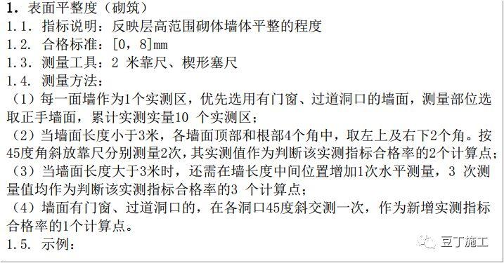 墻面檢查,首先由班組自行檢查,施工員進(jìn)行復(fù)檢抽查,檢查率要達(dá)到 80%以上。檢查結(jié)果數(shù) 據(jù)及時(shí)上墻。