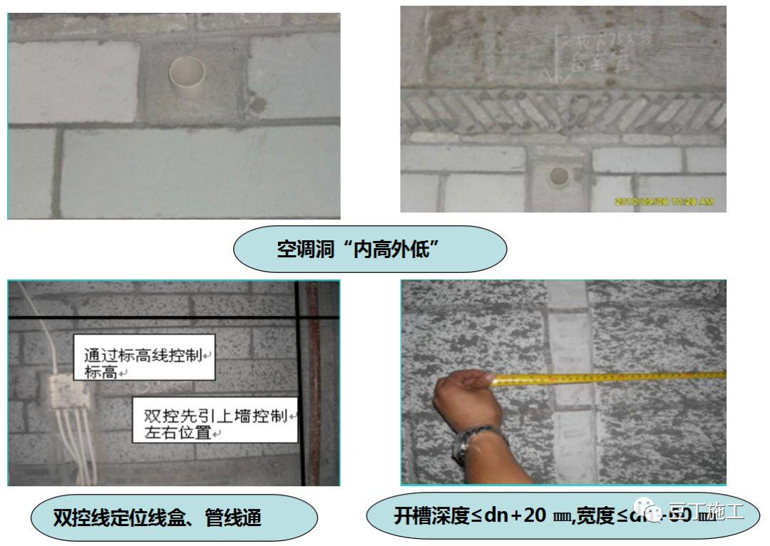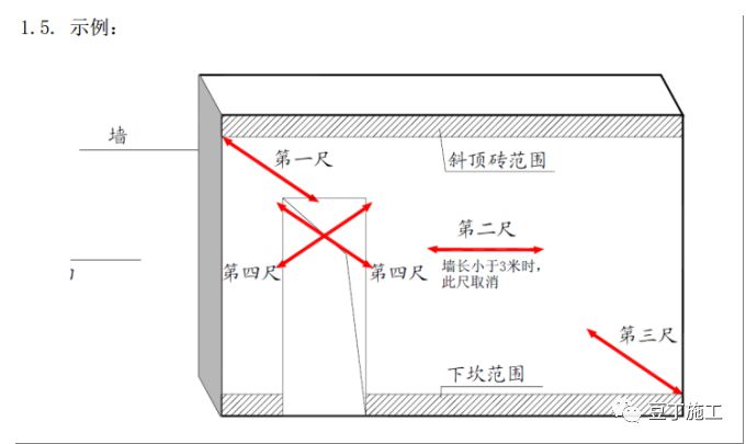 ⑴無斷磚上墻,無通縫、瞎縫,砌體完成 7 天后方可排砌頂部斜磚。