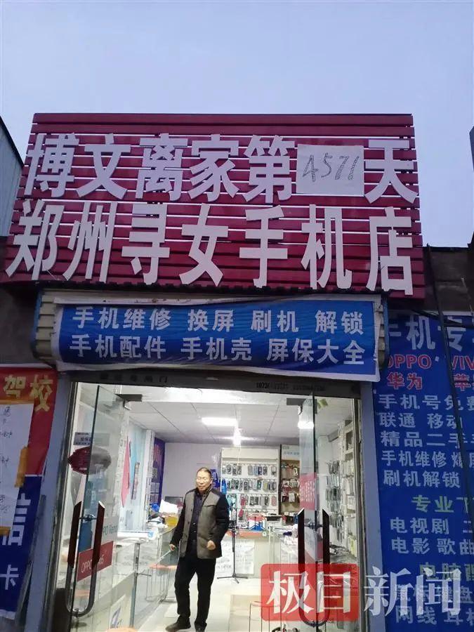 12月8日上午8點(diǎn)多,河南鄭州中原區(qū)須水鎮(zhèn)的“鄭州尋女手機(jī)店”營業(yè)前,48歲的老板盧麗搭梯爬到3米多高的招牌上方,在“博文離家第XX天”的空白處,貼上“4573”。