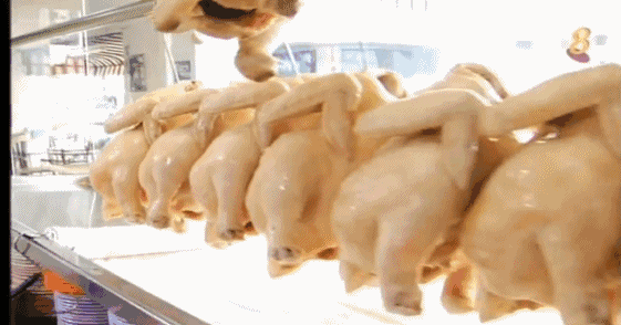 一道上好的白切雞每個流程都得上心,放血、拔毛、烹飪每個環(huán)節(jié)都有訣竅,一不小心就破壞雞肉的原味。烹飪時用豬大骨加海味混合熬煮的高湯浸熟,在浸熟的過程中得每1分鐘撈起來過一遍冷水,雞的每個部位厚度不同,所以得不停的變換姿勢浸熟,如此反復(fù)幾次才能完成浸泡流程,浸泡完成之后還不能急著吃,得先冷卻半個小時左右,這樣才完成了一道的白切雞。