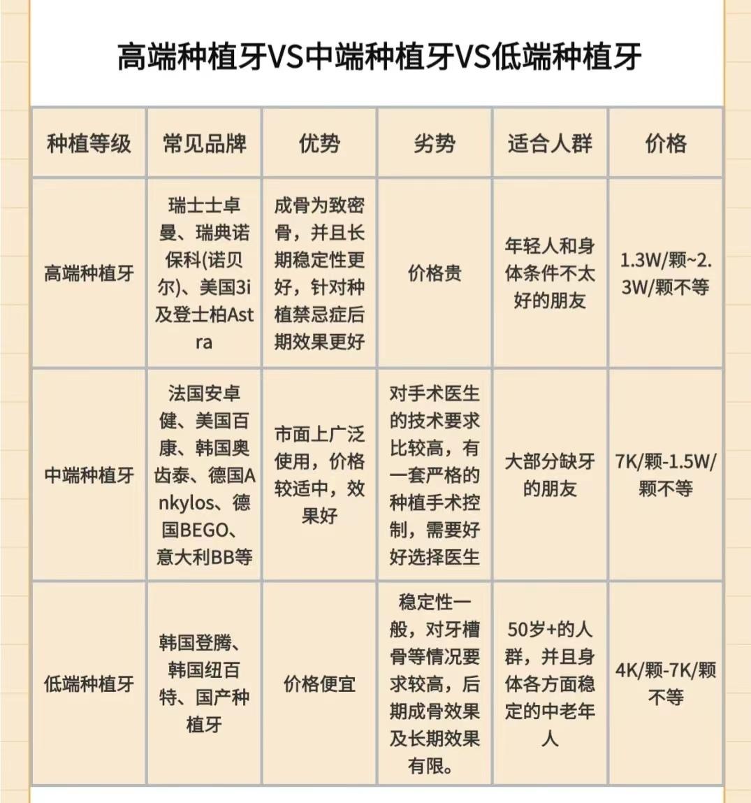 從圖上可見,你適合什么種植體,其實(shí)我覺得一方面看你的預(yù)算,一方面考慮到年齡果,還有就是低端和中高端質(zhì)保時(shí)間不一樣,我問了幾家,一般低端的保5年的偏多,高端的有些可以保終身,所以這點(diǎn)一定要問清楚。