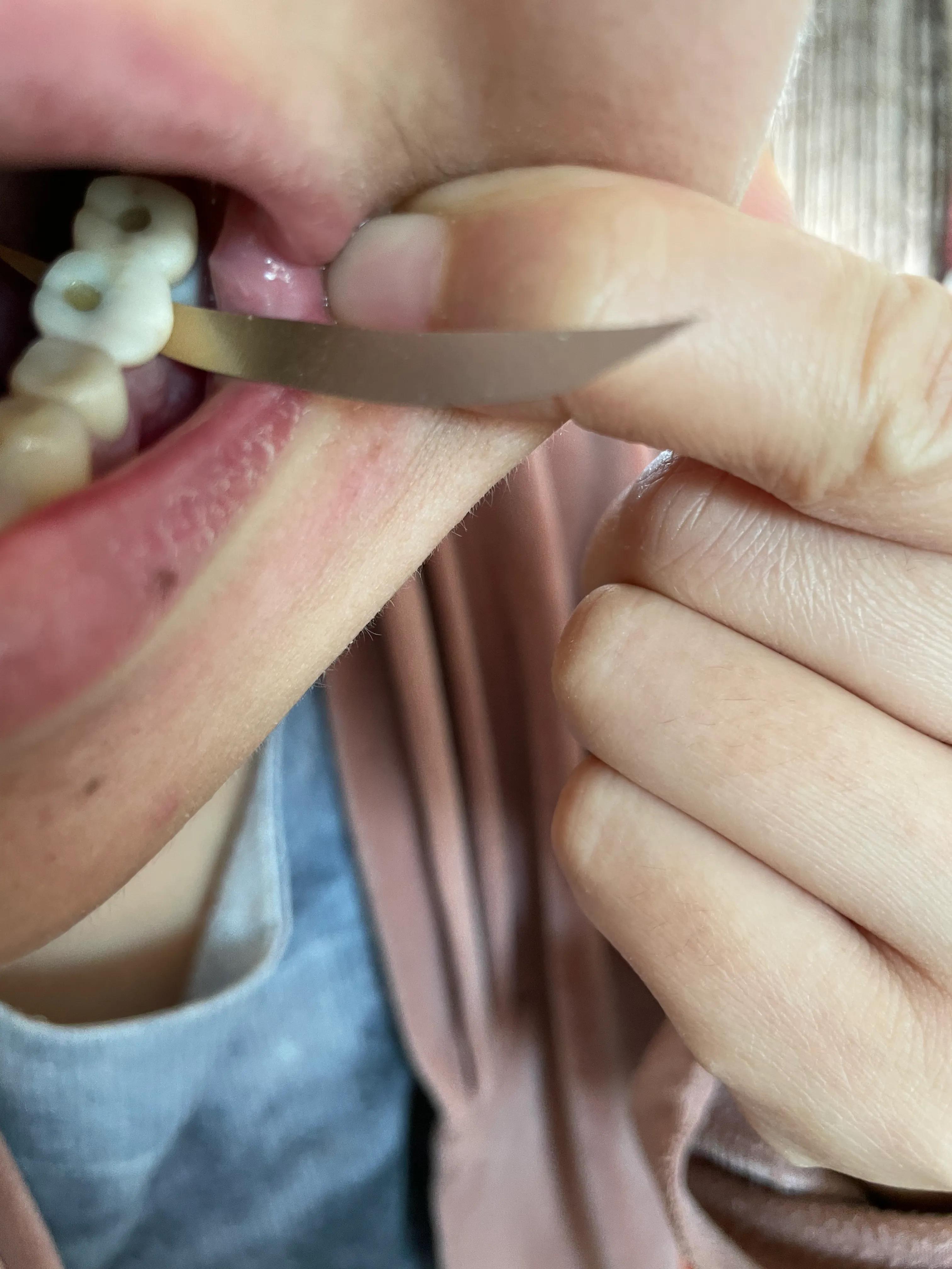 我不是專(zhuān)業(yè)醫(yī)生 不懂他們所說(shuō)的正常現(xiàn)象都包括什么 要怎么后期維護(hù) 我現(xiàn)在先不講看不見(jiàn)的難受 疼 先講直觀能看見(jiàn)的 他們哪位醫(yī)生可以做到把大米粒塞到牙齒下面 和將近半厘米的塑料條塞過(guò)他們的牙齒 吃過(guò)東西就要用沖牙器 不然隔頓就臭了