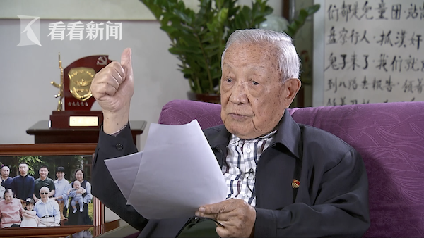 紀念上海解放七十周年這段時間,上將常在電視里看到70年前的影像。歷史影像里,他和戰(zhàn)友們剛進上海市區(qū),秋毫無犯,冒雨睡馬路??吹竭@些,他一夜一夜不能入眠,即使入夢,夢里也是70年前的烽火歲月。90歲的上將欣然接受我們的專訪,是因為對上海的特殊感情,他說,軍民魚水情,難忘的就是上海!老將軍祝福上海市民幸福安康,他衷心祝愿上海人民緊緊地團結(jié)在以同志為核心的黨中央周圍,不忘初心,牢記使命,再創(chuàng)輝煌!
