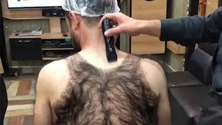 男子后背黑毛濃密 理發(fā)師順勢修剪出"人毛背心"