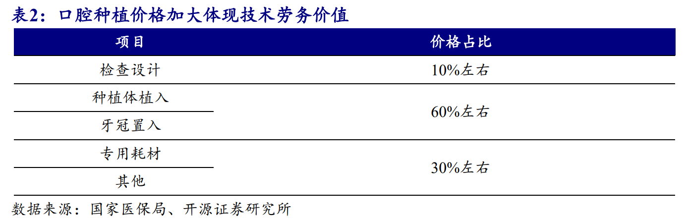 種植牙服務(wù)分為牙種植體、修復(fù)材料、牙冠規(guī)模、基臺(tái)、服務(wù)及其他。開源證券分析師蔡明子8月21日發(fā)布的研報(bào)指出,《意見稿》對(duì)種植牙價(jià)格實(shí)行“技耗分離”,同時(shí)體現(xiàn)技術(shù)勞務(wù)價(jià)值。價(jià)格變化上看,群眾反映強(qiáng)烈、費(fèi)用負(fù)擔(dān)重的種植體植入費(fèi)/牙冠置入費(fèi)/植骨手術(shù)費(fèi)以降為主,技術(shù)難度大、風(fēng)險(xiǎn)程度高的項(xiàng)目以及拔牙/牙周潔治/補(bǔ)牙等以技術(shù)勞務(wù)為主的低價(jià)項(xiàng)目調(diào)增價(jià)格。