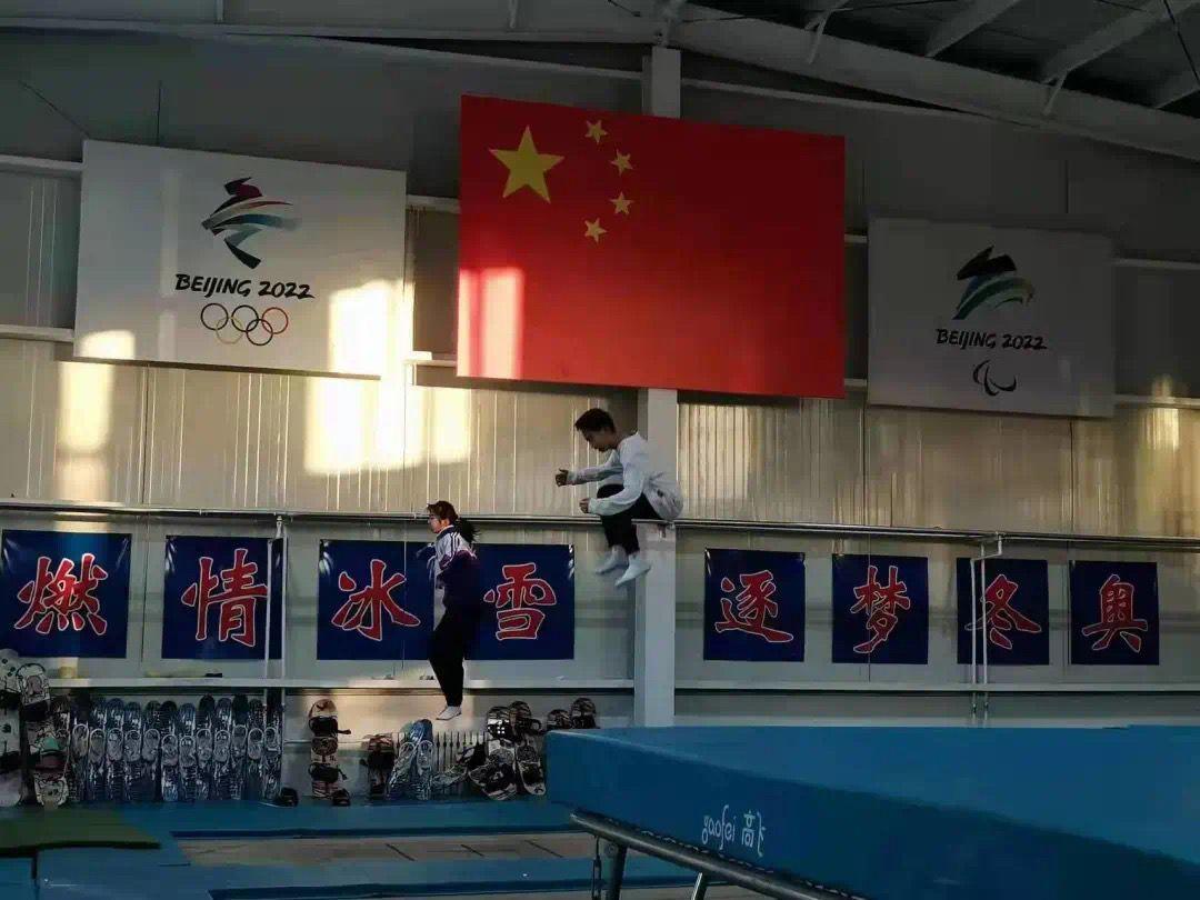 2022年冬奧會(huì)前夕,學(xué)校的室內(nèi)訓(xùn)練館內(nèi),冰雪班的隊(duì)員們正在進(jìn)行基礎(chǔ)訓(xùn)練。受訪者供圖