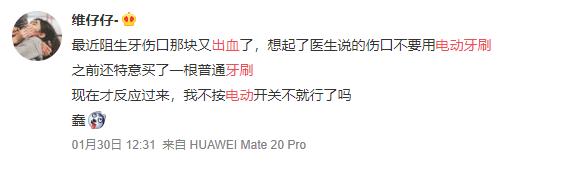 購(gòu)買技巧一:不要盲目迷信,崇洋媚外盲目跟風(fēng)買所謂的。先不說(shuō)價(jià)格昂貴,更重要的是震感太強(qiáng)了,對(duì)牙齒造成巨大的摩擦,十分容易傷牙,給牙齒帶來(lái)不可逆的傷害。其實(shí)這些所謂的,基本都是國(guó)內(nèi)貼牌代工生產(chǎn),在技術(shù)研發(fā)上投入很低,傷牙率很高!這也是典型的電動(dòng)牙刷引發(fā)的危害隱患。震感過(guò)強(qiáng)牙齒雖然干凈了,但大概率會(huì)導(dǎo)致牙齦出血,下面這位網(wǎng)友就是一個(gè)典型的例子: