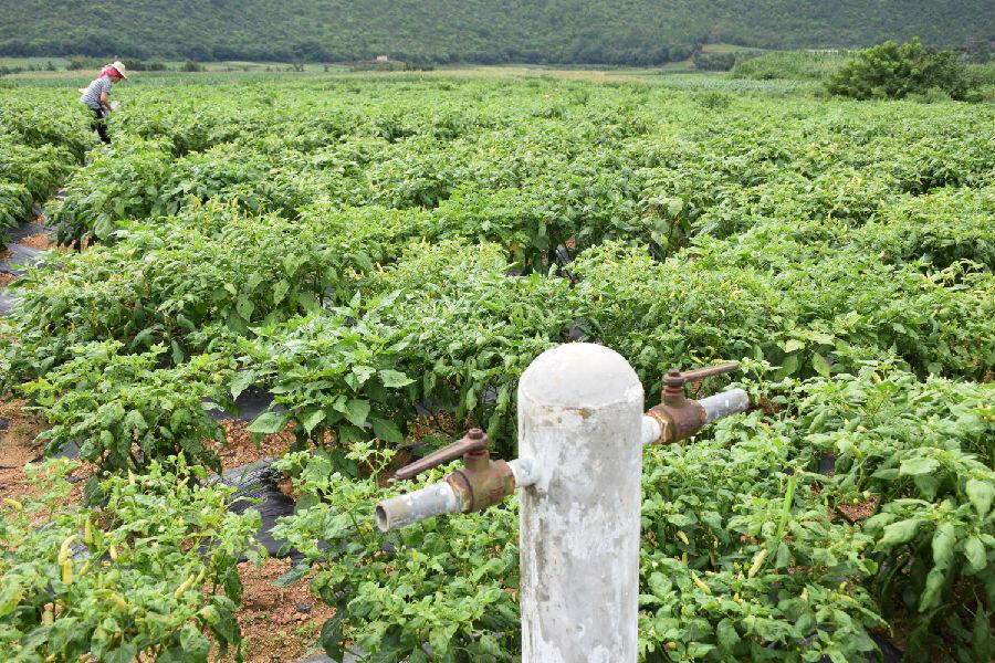 圖為小米辣種植基地安裝上灌溉設施(趙樹龍 攝)